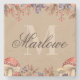 Rustikaler Tan- und Brauner Monogramm-Untersetzer mit Vor- oder Nachname, umgeben von Kalkpilzen, Herbstblättern und Herbstbeeren. Niedliche personalisierte neue Wohngestaltung, um als häusliche Erwärmung Party Geschenk im Herbst oder im Erntedank.