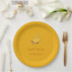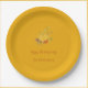 Lieblich fallen Papier Teller mit GLÜCKLICH THANKSGIVING in Schrift-Schrift. Mit Kürbis und Blätter dekoriert. Füge Deinen Namen hinzu.