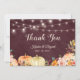 Rustikale Autumn Pumpkin Burgundy Floral String Lichter Danke Karte Karte.