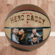 Rustikal Sie sind mein Held Daddy Vatertag 2 Foto Collage Basketball. Der Hintergrund ist rustikal beige und der Text ist eine trendige Typografie. Personalisierter Basketball für einen Vater. Fügen Sie 2 Fotos und Ihre Namen hinzu. Du kannst Papa zu Papa wechseln, Papa, Papa.... Perfektes Geschenk für einen Vater an einem Vatertag, Geburtstag oder Weihnachten und es ist ein süßer Sake.