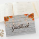 Rustikales graues Holz "Fall in Liebe" String Lights, Gold Glitzern & Herbstlaub Saisonalheiratsbuch.