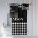 Rustikaler Karierter Monogramm-Bär | SCHWARZ-WEISS Badhandtuch Set