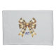 Ein sanftes, rustikales Design mit einem Bogen in einem karierten, goldenen und schwarzen Muster, hervorgehoben mit einem schwarzen Monogramm, schafft eine elegant einfache Kissenschale.
