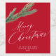 Elegantes Drehbuch Frohe Weihnachtswein-Etikett mit grünen Kiefernnadeln auf einem hellen roten Hintergrund. ++++++++++++ Einfach mit Ihrem Namen, Text und Jahr personalisieren.