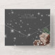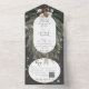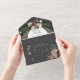 MIT ODER OHNE QR-CODE ZUM AUSSCHLIESSEN. Dieses Design besticht durch einen rustikalen grünen Kiefer und einen pineconfarbenen Bouquet auf einem weichen schwarzen Hintergrund aus Holzkohle mit weißen Blume. Es wird durch ein weißes, glänzendes Overlay hervorgehoben, um den Zauber der schönen Winterferien zu veranschaulichen. Ideal für eine Weihnachts- oder Winterhochzeit. Personalisierte All-In-One-Einladungen sind eine einzigartige Kombination aus einer schön gedruckten, maßgeschneiderten Einladung und einer leicht zu abreißenden perforierten UAWG-Postkarte. Und sie sind so einfach zu bedienen! Man falte einfach, dann Siegel die Rückklappe mit den drei beiliegenden Klarkleben, und Post. Und wenn Ihre Gäste Ihre persönliche Einladung erhalten, reißen sie einfach die perforierte RSVP Karte ab und lassen sie in der Mail an Sie zurück!