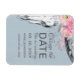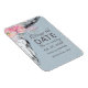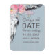 Diese rustikale thematische Hochzeit ändern das Datum der Ankündigung Magnetkarte ist für, wenn das Paar sein Hochzeitstag ändern muss aus welchem Grund auch immer sie haben. Dieses inspirierte Design-Template zeigt handgezeichnete und bemalte Kuhschädel mit einer blütenrosa Wasserfarbenblumenhaube auf einem Hintergrund aus weißem und grauem, verwittertem Holz. Rechts ist Ihre Änderung des Datums Ankündigung in der schwarzen Schrift Typografie. Personalisieren Sie mit Ihren Namen und neuen Hochzeitsdatum. Entworfen von der Künstlerin Susan Coffey.
