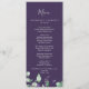 Diese rustikale Lavendel lila Karte für Hochzeitsessen ist ideal für eine einfache und elegante Hochzeitsfeier im Freien. Das Blumendesign zeichnet sich durch Aquarelleukalyptus-Blätter und Grünpflanzen mit lila Wildblumen auf einem lila Pflaumenhintergrund aus. Diese Speisekarte kann für Hochzeitsfeiern, Proben oder jede Veranstaltung verwendet werden.