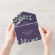 Diese rustikale Lavendel und Eukalyptus lila Hochzeit in einer Einladung ist perfekt für eine einfache und elegante Hochzeit im Freien. Das Blumendesign zeichnet sich durch Aquarelleukalyptus-Blätter und Grünpflanzen mit lila Wildblumen aus. Schreiben Sie Ihre Gastadressen auf der Rückseite der gefalteten Einladung, oder kaufen Sie die passenden Gästetiketten-Aufkleber (separat erhältlich).
