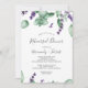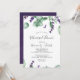 Diese rustikale Lavendel und Eukalyptus Probe Dinner Einladung ist ideal für eine einfache und elegante Hochzeitsfeier im Freien. Das Blumendesign zeichnet sich durch Aquarelleukalyptus-Blätter und Grünpflanzen mit lila Wildblumen aus.