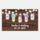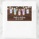 Ein rustikales Holz strukturierte Hochzeitsaufkleber mit Blumenkeramikglas und Lichterkette. Dieser Aufkleber ist Teil eines Hochzeitseinladungs-Set.