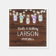 Ein rustikales Holz texturierte Hochzeitsnapkins mit Blumenkeramikkernen und Lichterketten. Diese Servietten sind Teil eines Hochzeitseinladungs-Set.