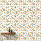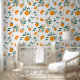Akzentuieren Sie Ihre Wände mit dieser gemusterten Tapete aus Zitrusfrüchten. Es zeichnet sich durch lebhafte Orangen und Orangenblüten mit üppigem Blattwerk aus.