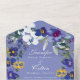 MIT ODER OHNE QR-CODE IM UAWG BEREICH ERHÄLTLICH. Dieses Design ist einfach und elegant, mit einem lila, blauen, gelben und knalligen orchitischen Kranz auf einem gewölbten Hintergrund. Fügen Sie Ihrer Einladung einen QR-Code hinzu, damit Besucher schnell auf Ihre Hochzeitswebsite für Details, Anleitungen, Menüoptionen und mehr zugreifen können, oder fügen Sie Ihre Geschenkregistrierung Web-URL. Personalisierte All-In-One-Einladungen sind eine einzigartige Kombination aus einer schön gedruckten, maßgeschneiderten Einladung und einer leicht zu abreißenden perforierten UAWG-Postkarte. Und sie sind so einfach zu bedienen! Man falte einfach, dann Siegel die Rückklappe mit den drei beiliegenden Klarkleben, und Post. Und wenn Ihre Gäste Ihre persönliche Einladung erhalten, reißen sie einfach die perforierte RSVP Karte ab und lassen sie in der Mail an Sie zurück!