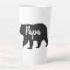 Diese rustikale Latte-Kaffee-Tasse für Väter oder Großdads zeigt einen schwarzen Bären auf weißem Hintergrund mit dem Wort "Papa" in der modernen bedrängten Typografie in der Mitte. Entworfen von den Künstlern Susan Coffey und Tim Coffey.
