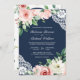 Rustikaler Pfirsichbläser Navy Blue QR Code Hochze Einladung