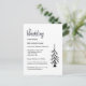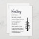 Rustikale Kiefernbaumhochzeit Einladung Postkarte, mit einem einfachen Typografie-Design auf einem weißen Hintergrund. Mit einer schwarzen, anpassbaren Schrift fügen Sie Ihre eigenen Informationen hinzu. Ideal, um Ihren besonderen Tag mit einem lässigen Boho Stil zu planen.