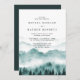 Elegante und rustikale Hochzeitseinladung mit Wasserfarbengebirge mit Bäumen mit klassischer Typografie. Auf der Rückseite ist QR-Code zu UAWG und mehr Details über Ihre Hochzeit.