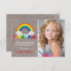 Rustikale Kinder Geburtstagsparty Dankeschön Karte mit einem magischen Regenbogen, ein Foto des Geburtstagsmädchens oder eines Jungen, verstreuten bunten Sternen und ein Dankeschön, das für alle personalisiert sein kann, die geholfen haben, Ihren besonderen Tag zu feiern.