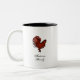 Rustikaler roter Hahn Familienname personalisiert Zweifarbige Tasse