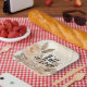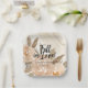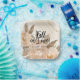 Die Liebe fällt, Ihre Namen und das Hochzeitstag werden auf einer Collage aus eleganten pfirsichfarbenen, blassfarbenen Terrakotta- und silberfarbenen Aquarellfarben-Blume sowie eleganten braunen Blätter auf diesen quadratischen Tellern gedruckt. Ideal für Hochzeiten, Polterabende oder andere Gelegenheiten. PASSENDE Artikel in unserer Sammlung.