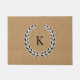 Diese rustikale Artfußmatte kennzeichnet einen Leinwandblickhintergrund und einen Schwarzweiss-Lorbeer-Kranz mit Ihrem Monogramm in der Mitte.