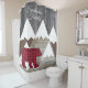 Duschvorhang für Ihr rustikales Bergkabinett Bad. Auf einem holzgeschmückten Hintergrund mit schneebedeckten Bergen und einem roten und schwarzen Büffel-Karo. Personalisiert mit Ihrem Familiennamen oder beliebigem Text. Ideal für Ihre Blockhütte oder Ferienvermietung.