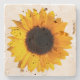 Eleganter SteinUntersetzer mit digitalen Grafiken einer großen Sonnenblumeblüte. Fertigen Sie besonders an, um jeden möglichen Text zu addieren, den Sie wollen. Macht eine reizende Geschenkidee.