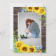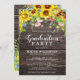 Lebhafte, wasserfarbene Sonnenblumen auf rustikalem Stallholz mit Lichtern. Ihr Foto wird auf der Rückseite dieser rustikalen Abschlussfeier mit einem Rahmen von Sonnenblumen präsentiert. Ideal für den Absolventen, der nach einer rustikalen Abschluss-Einladung/Ankündigung sucht.
