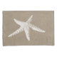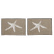 Rustikale Kissenbezüge am Strand mit weißem Seesterne-Design über Imitate, die auf dem Löffel gedruckt sind.