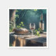 Rustikaler Tisch mit Wein in einem Wald Serviette