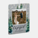 Treten Sie ein in ein Winterwunderland mit unseren rustikalen Urlaubsornamenten! Mit dem Charme eines grauen Holzhintergrunds, funkelnden Saitenlichtern und zauberhaften Weihnachtsbäumen in Aquarellen. Das Sprichwort "unsere ersten Weihnachten verlobt", die Paarnamen und das Jahr werden mit einem Foto individuell gestaltet.
