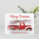 Vintager Retro rustikaler alter LKWs Frohe Weihnachtsferien Wohnung Grußkarte. Einfach weißer, bedrückter Blick mit Landbäumen im Hintergrund. Bildrecht Marg Seregelyi Fotografie.