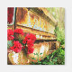 Diese niedliche, kleine rustikale Szene besticht durch hellrote Carnation-Blume, einen rostigen Chevy-LKW und eine lebendige grüne natürliche Kulisse.
