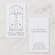Haus, das einfache moderne Minimalistische berufliche schwarze u. weiße Geschäfts-Karten zeichnet. Dieser Entwurf ist für jedes Zuhause, wirkliche Anwesen, Bau, Architektur-, Innenarchitektur oder zeichnenberater oder Geschäft groß. Behalten Sie Haus zu zeichnen oder ersetzen Sie durch Ihr eigenes Bild oder Logo, wenn Sie gewünscht werden. Personifizieren Sie es vorder und hinter mit Namen-, Titel- und Kontaktinfo. Löschen Sie alle mögliche nicht benötigten Informationen oder addieren Sie mehr. Diese Visitenkarte kann völlig besonders angefertigt werden. Über den Entwurf: Dieses Bild ist von meiner ursprünglichen Tinte auf Plastik-Handdem zeichnen einer kleinen rustikalen Hütte mit dem Bezaubern der Architekturdetails und kleiner Stein benches jede Seite der Tür.
