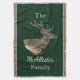 Schöne und kühn gestaltete Hirsche Silhouette auf einem dunkelwaldgrünen Hintergrund und weißer personalisierter Familienname Text!