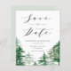Ankündigen Sie Ihr Hochzeitsdatum mit dieser individuell anpassbaren, Save the Date flachen Karte. Es zeichnet sich durch Aquarellbäume, elegante Schrift und einfache Typografie aus. Personalisieren Sie diese Ankündigung Datum freihalten, indem Sie Ihre Hochzeitsdetails hinzufügen. Diese Waldkarte Save the Date ist ideal für Frühjahrsfeiern und Winterhochzeiten.