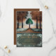 Datum freihalten. Aquarellfarben, Farben. Rustikale Grüntöne, Braun, Golden. Große Bäume auf jeder Seite eines Single grünen Baum.