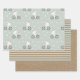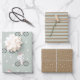 Dieses skurrile Set für Weihnachtsverpackungen in Form von Weihnachtsbelägen weist drei verschiedene Designs auf. Das erste einzigartige Design zeigt einen Winterpolarbär auf einem Fahrrad mit neutralem Minzgrün und Schneeflocken. Das zweite Verpackungsdesign zeichnet sich durch moderne, minzgrüne Streifen aus, und das dritte zeichnet sich durch ein elegantes Schneemuster auf braunem Kraftpapier aus. Die perfekte Winterverpackung für Ihre Geschenke in dieser Ferienzeit.