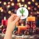 Rustikale Weihnachtskaktus Weißholz Weihnachtsaufenthalt Runde Sticker mit einem rustikalen, südwestlichen Saguaro Kaktus mit einem festlichen Urlaub botanischen blühtest von poinsettias und heilig auf einem rustikalen weißen Holzboden. Einfach eigene Details für ein personalisiertes Design hinzufügen. Die perfekte Ergänzung zu Ihren Urlaubskarten und -geschenken.