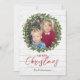 Zeichnen Sie Ihr Lieblingsstift mit einem hübschen, heiligen Kranz auf weißem Holzhintergrund. Diese rustikale Weihnachtskarte wird Familie und Freunde begeistern. Die Boards werden auch auf der Rückseite mit einem optionalen Platz für eine Nachricht oder eine Jahresbewertung angezeigt.