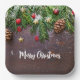 Rustikaler Weihnachtstisch mit Kiefer und Schnee Pappteller