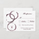 Rustikale RSVP Karten für die Hochzeit des Weingutes - mit Weinglasflecken, die auf der Vorderseite des Kartenvorrats gedruckt werden. Die Texte sind in verschiedenen Farbtönen der Weinflecken.