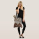 Die rustikale Tasche ist mit einem dunklen Lederhintergrund und einer Imitat-Spitzentafel mit Perlen versehen. Personalisieren Sie es unter der Spitze in weißer Schrift. Der Schriftart ist vollständig anpassbar, wenn Sie gewollt haben, ein anderes Stilbild zu verwenden. Das Design erscheint auf beiden Seiten.