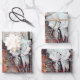 Rustikaler Western rodeo Bull Schädel Grunge Textur florale boho Sonnenblumen Handwerk entcoupage Packpapier Blatt Set von drei. Vintage rostbraune Holzstäbe. Bauernhaus Cowboy Design Geschenkpackung. Bildrecht Marg Seregelyi Fotografie.