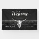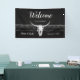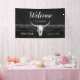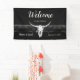 Willkommen rustikale Hochzeit, Western Schwarz-Weiß Bullen Kuh Schädel Cowboy Abendessen Empfang Banner-Zeichen. Personalisierter Bauernstil. Coole alte wilde Westen Vintag antike inspiriert. Modernes, trendiges Bauerndesign. Benutzerdefiniertes Skript. Bildrecht Marg Seregelyi Fotografie.