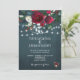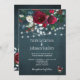 Rustikale Wintereinladung auf einem dunkelmarineblauen Kalkbrett mit einer schönen, dunkelroten Bordeaux- und Weißperonenbouquet mit Jäger-Pinienblättern, Streichern mit weißen binkelfarbenen Lichtern und einem schicken Typografie-Script. ++++++++++++++ Einfach mit Ihren Daten personalisieren! ++++++++++++++++++ Die Einladung eignet sich für die elegante Winterlandschaft / Bauernhof / Hütte / Weihnachtsfeiern und Empfang.