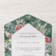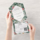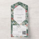 MIT ODER OHNE QR CODE ZUM SCAN ODER MIT ODER OHNE ABENDESOPTIONEN. Das gesamte Hochzeitsdesign besticht durch einen wunderschönen Winterrahmen aus Kiefern, roten Beeren und weißen Blume auf smaragdgrünem, weißem Hintergrund. Ideal für den Winter oder Weihnachten Hochzeit. Erstellt von der einfachen Farmhouse Press.
