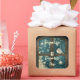 Ein rustikales Winterhüttenfenster mit Sternenhimmel und Schneeflocken, einem immergrünen Baum und einem Spitzvogel. Personalisieren Sie, wenn Sie möchten.