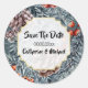 Stilvolles und elegantes Design auf einem dunkelblauen Hintergrund mit einem Rand aus Kieferntönen, roten Beeren und winterwolkenförmigen Blume in dunkelgrünen, braunen und orangefarbenen Tönen. Die sanften Schneeflocken sorgen für ein elegantes und hochwertiges Gesamtbild. Wenn Sie im Winter heiraten, eine Winterlandschaft oder ein rustikales Waldthema haben, dann ist dieser preisfreundliche "Save the Date" Rundaufkleber der ideale Ort.