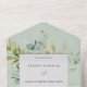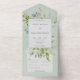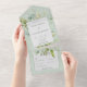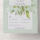 EBENFALLS IN STILEN OHNE ABENDESOPTIONEN ODER MIT QR CODE VERFÜGBAR. Diese Hochzeitseinladung verströmt mit ihren zarten Designelementen einen eleganten Charme. Vor dem Hintergrund eines lichtdurchfluteten Salbei-Grüns, vermittelt die Einladung eine ruhige Atmosphäre und schafft eine beruhigende und ruhige Atmosphäre. Der grüne Hintergrund ist leicht weiß und verleiht dem Ganzen eine Touch Vintager Eleganz. Im Mittelpunkt der Einladung steht ein zentriertes weißes Textfeld, das als Brennpunkt dient. Die unberührte, weiße Farbe des Textfelds schafft einen auffallenden Kontrast zur ruhigen grünen Kulisse und sorgt für Klarheit und Eleganz. Um das Textfeld herum ist ein Rahmen mit exquisitem botanischen Aquarell verziert. Die aufwändigen botanischen Elemente werden fachgerecht gefertigt und verleihen dem Design eine natürliche Touch und ein Gefühl der Verzauberung. Diese zarten Details im Grünen gehen über den Rahmen hinaus und reichen anmutig bis ins Äußere der Einladung, als ob die Natur sich den Anlass zu eigen gemacht hätte. Insgesamt präsentiert sich die Hochzeitseinladung in einer harmonischen Mischung aus hellweiss grün, bedrücktem Weiß und zartem botanischen Aquarell. Seine zeitlose Schönheit und Liebe zum Detail versprechen, die Gäste zu bezaubern und den Ton für eine zauberhafte und unvergessliche Hochzeitsfeier Set. Erstellt von der einfachen Farmhouse Press.